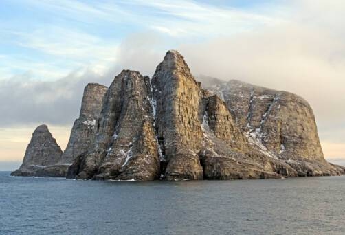 Monumental Island, situated in the icy waters of the Canadian Arctic, is a remote and breathtaking destination known for its dramatic landscapes and rich wildlife.