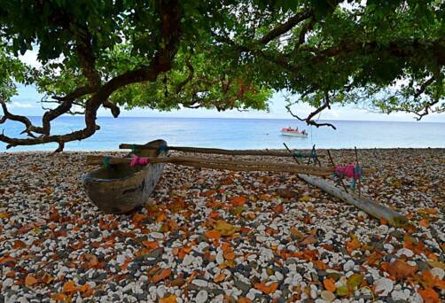 The second-largest city in the Vanuatu archipelago, Luganville is on the large northern island of Espiritu Santo, and has an unusually broad main street, the result of its occupation by some 40,000 Allied troops in World War II. The commander insisted that the road accommodate four trucks abreast. Its protected harbor makes the town one of the island nation’s most important ports, a center for trans-shipping of copra and cacao. The rusting relics of its WWII heritage are everywhere on the island. But today most visitors are drawn to the natural features both on shore and in the surrounding seas. Blue Lagoon is a popular attraction, where a freshwater spring fills a clear, aqua-blue pool surrounded by lush vegetation. Others opt for exploring the island on horseback, a visit to a coconut oil factory or simply relaxing at one of the resorts along the beaches. One unusual alternative is a visit to a village of immigrants from the more remote Banks and Torres Islands, who perform traditional music and dances including an enchanting Water Music dance.